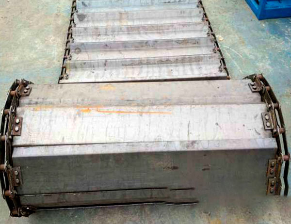 平板輸送機有單行道和雙行道兩種,其部件組合靈活,構成多樣,但其核心部件基本相同,都具有驅動裝置、牽引鏈條、頭輪總成、軌架、軌道、鏈板裝置、尾輪總成(或稱張緊裝置)、蓋板等。