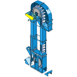 GD型鋼絲繩芯膠帶鬥式提升機牽引構件采用高強度鋼絲繩芯橡膠帶,克服了鏈條齧合驅動產生動載荷,較鏈條更輕便,工作平穩,能以更快的運動速度達到更高的生產率,在同樣的生產條件下,膠帶因其工作速度高和自重較輕,可使物料線荷載和牽引構件的線載荷減少,從而減少整機的尺寸和自重。