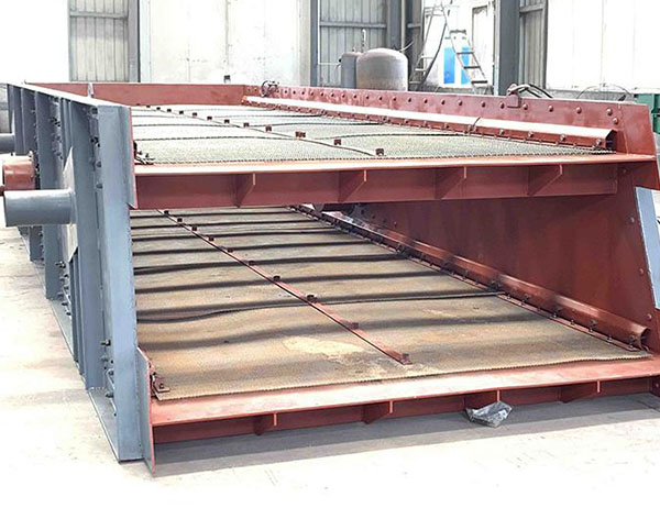 5、給料溜槽應盡可能靠近給料端,並盡可能沿篩子全寬均勻給料,其方向與篩麵上物料運行方向一致,從而得到最佳的篩分效果。給料點到篩麵的最大落差不大於500mm,確保物料對篩麵的最小衝擊;